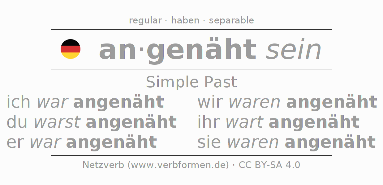 - ich war angenäht (1st PersonSingular)
