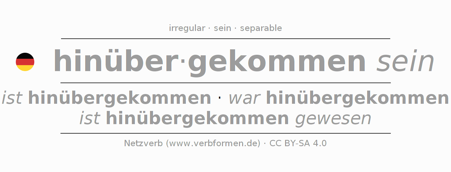 The verb hinüberkommen fully conjugated in all persons and numbers in the Imperfect Indicative