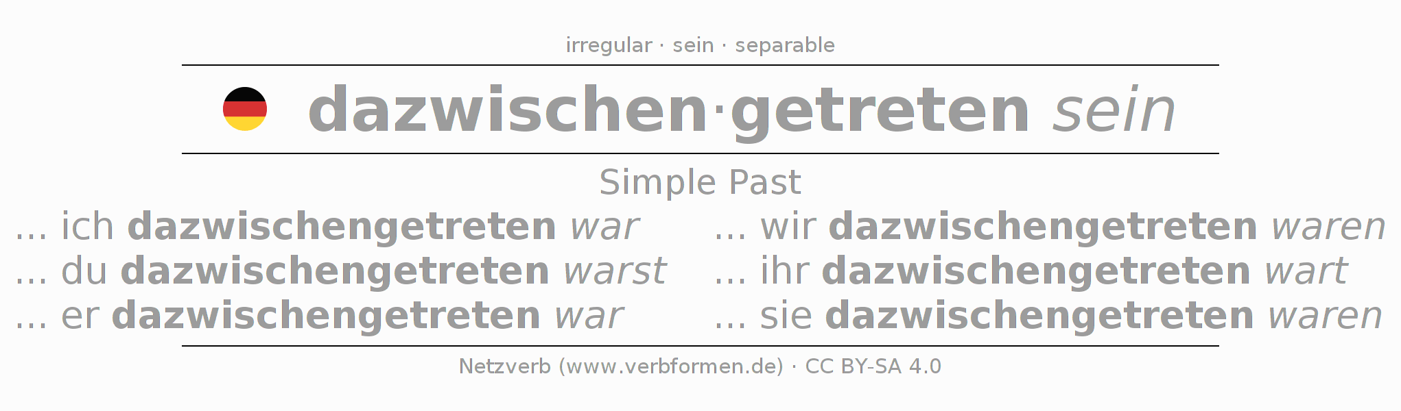 The verb dazwischentreten fully conjugated in all persons and numbers in the Imperfect Indicative