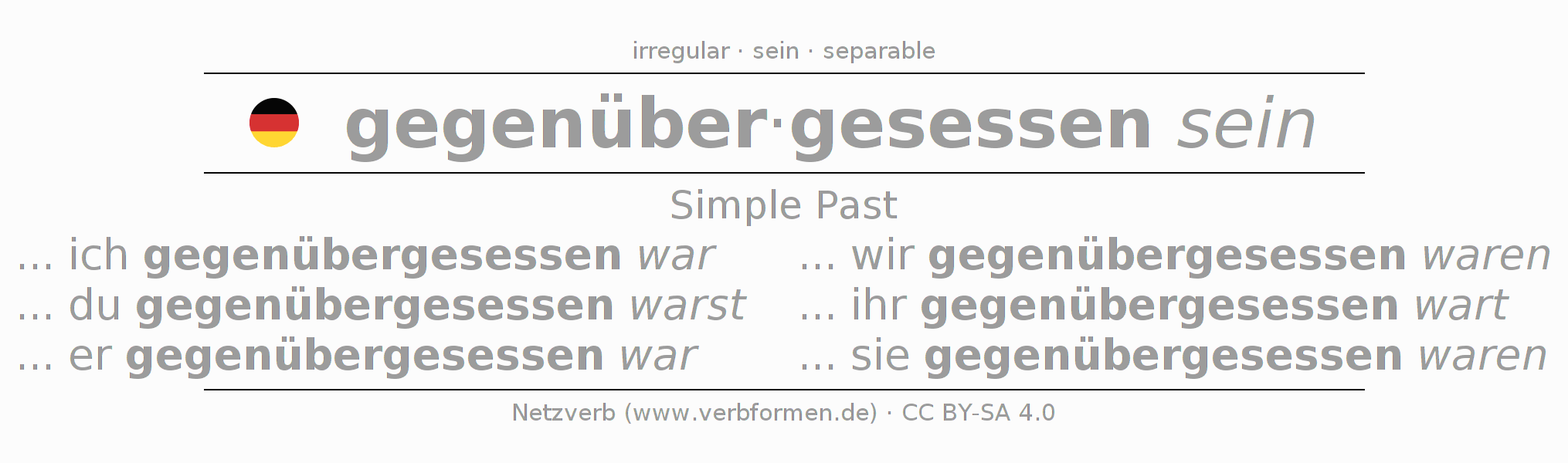 The verb gegenübersitzen (ist) fully conjugated in all persons and numbers in the Imperfect Indicative