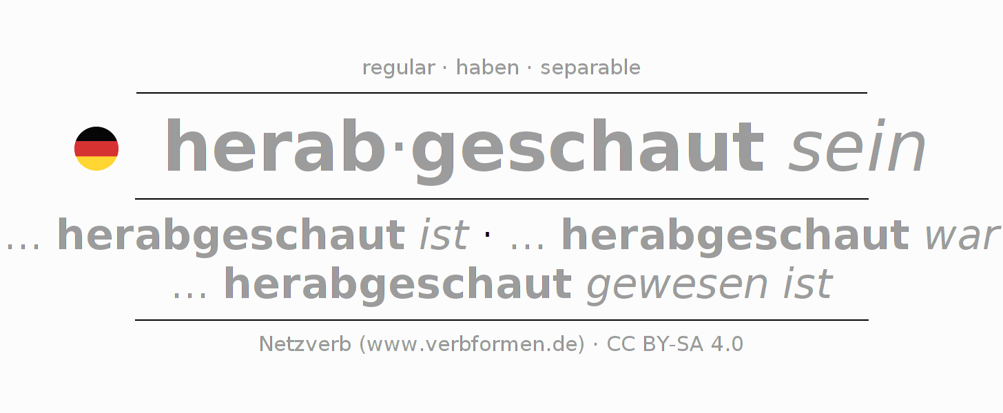 The verb herabschauen fully conjugated in all persons and numbers in the Imperfect Indicative