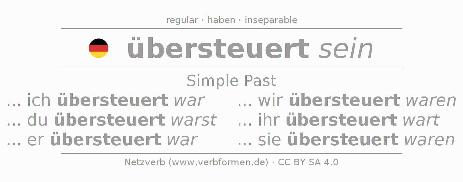 The verb übersteuern fully conjugated in all persons and numbers in the Imperfect Indicative