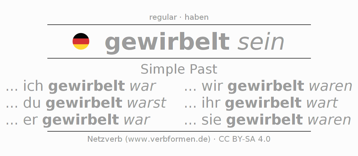 The verb wirbeln (hat) fully conjugated in all persons and numbers in the Imperfect Indicative