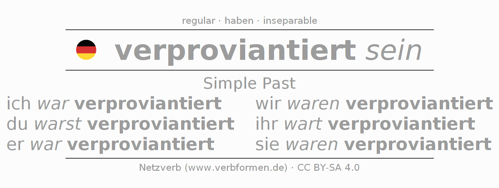 The verb verproviantieren fully conjugated in all persons and numbers in the Imperfect Indicative