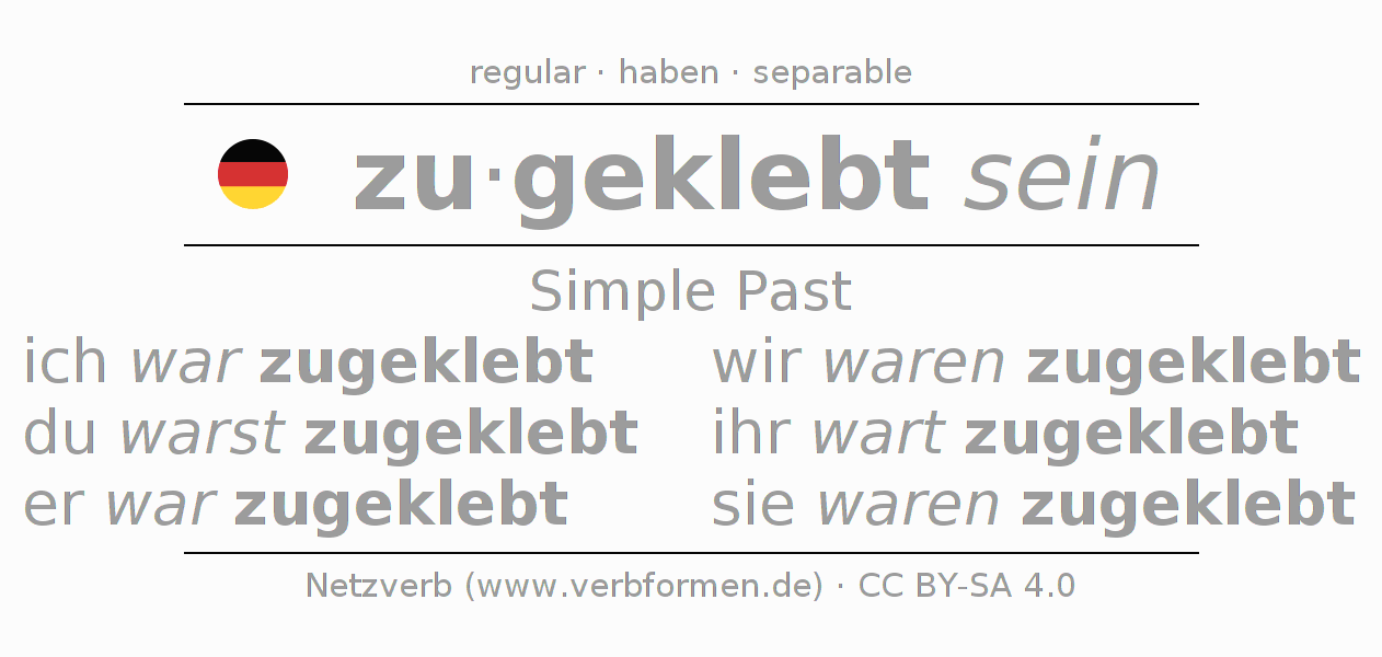 The verb zukleben fully conjugated in all persons and numbers in the Imperfect Indicative