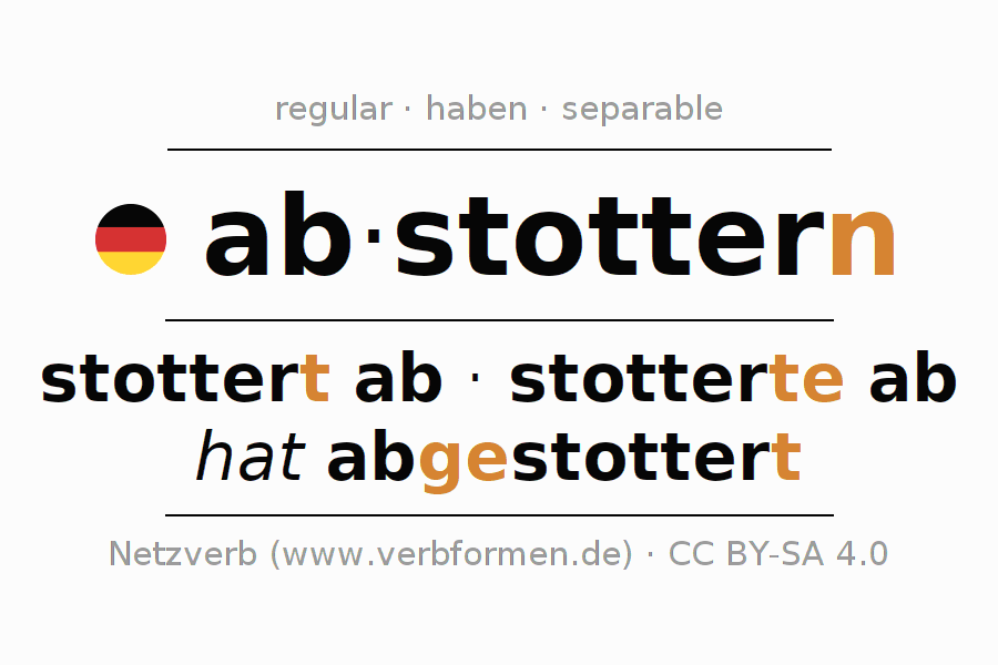 The verb abstottern fully conjugated in all persons and numbers in the Infinitive Present Perfect