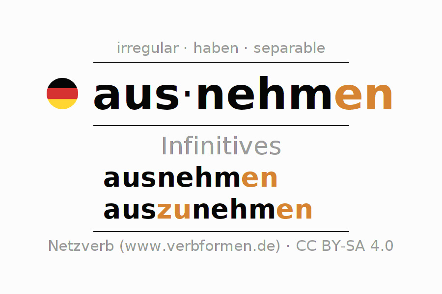 Verb forms in Infinitive of ausnehmen