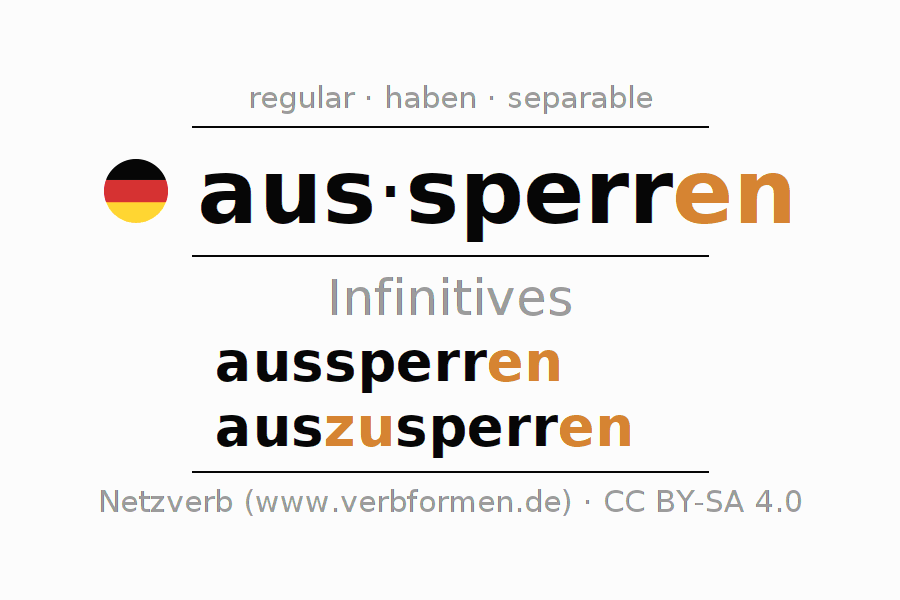 Verb forms in Infinitive of aussperren