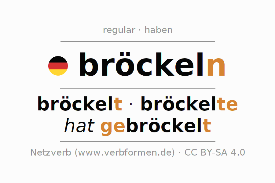 The verb bröckeln fully conjugated in all persons and numbers in the Infinitive Present Perfect