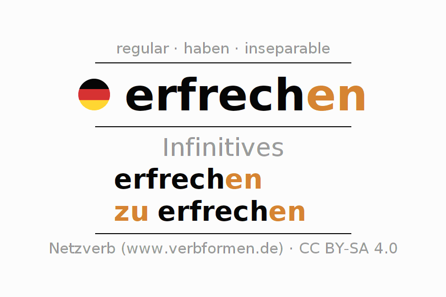 The verb erfrechen fully conjugated in all persons and numbers in the Infinitive Present Perfect