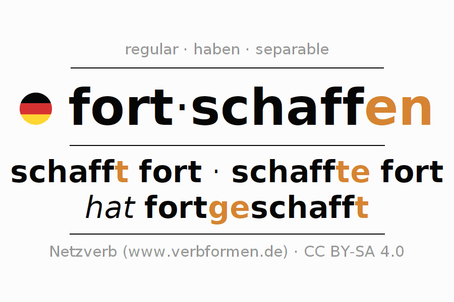 The verb fortschaffen fully conjugated in all persons and numbers in the Infinitive Present Perfect