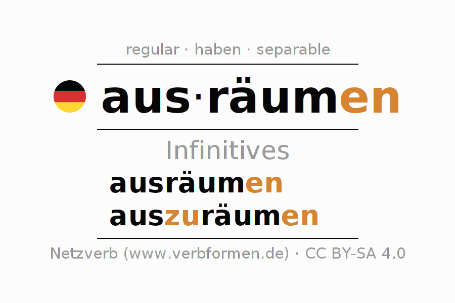 The verb ausräumen fully conjugated in all persons and numbers in the Infinitive Present Perfect