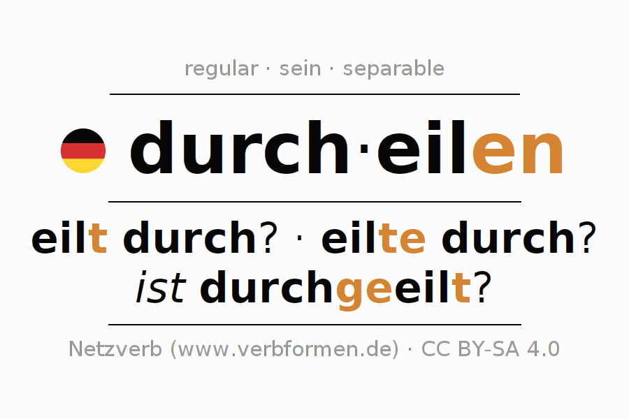 Infinitive of German verb durch-eilen (ist) 〈Interrogative〉