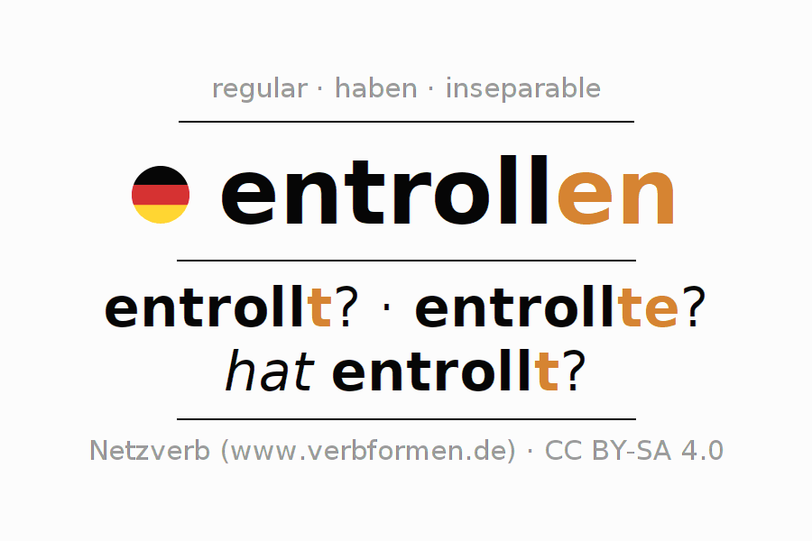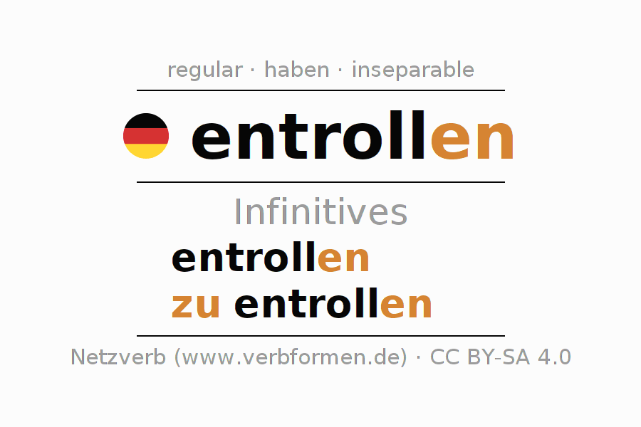 The conjugation of entrollen in Infinitive Present Perfect base form Active is entrollen, zu entrollen.The conjugation corresponds to certain grammatical rules. Likewise the requirements for the conjugation of the simple verb forms of entrollen in Infinitive. Comments ☆