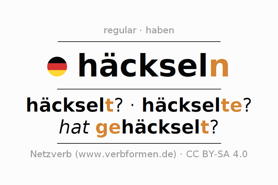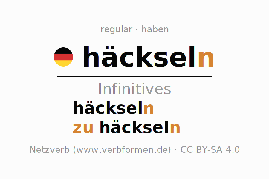 The verb häckseln fully conjugated in all persons and numbers in the Infinitive Present Perfect