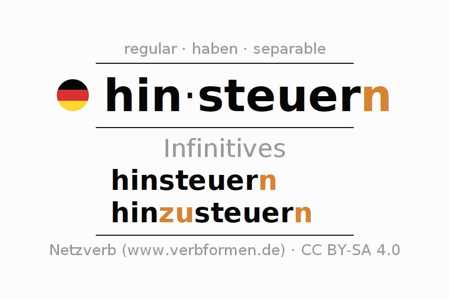 The conjugation of hinsteuern in Infinitive Present Perfect base form Active is hinsteuern, hinzusteuern.The conjugation corresponds to certain grammatical rules. Likewise the requirements for the conjugation of the simple verb forms of hinsteuern in Infinitive. Comments ☆