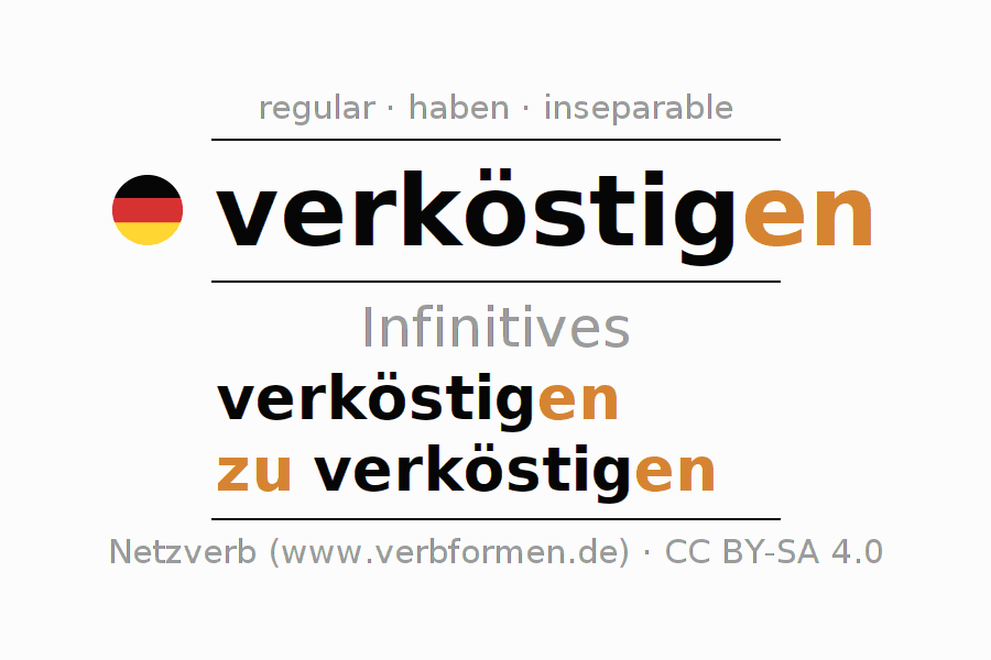 The verb verköstigen fully conjugated in all persons and numbers in the Infinitive Present Perfect