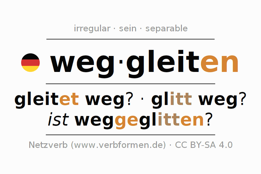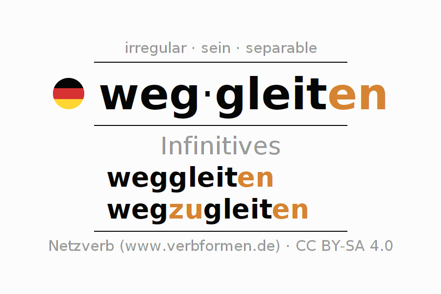 The verb weggleiten fully conjugated in all persons and numbers in the Infinitive Present Perfect