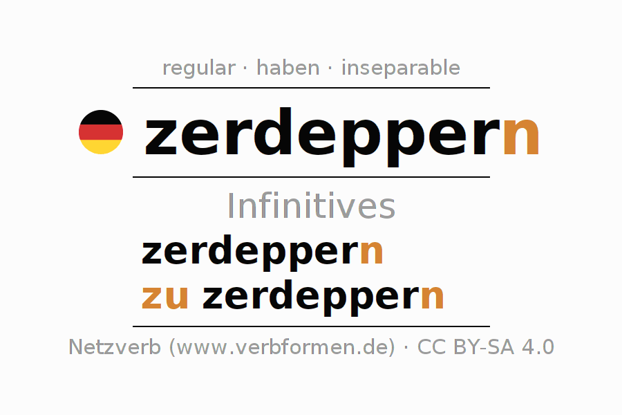 The verb zerdeppern fully conjugated in all persons and numbers in the Infinitive Present Perfect