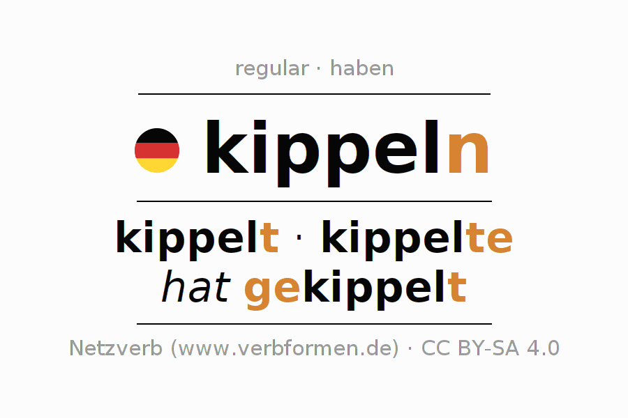 The verb kippeln fully conjugated in all persons and numbers in the Infinitive Present Perfect
