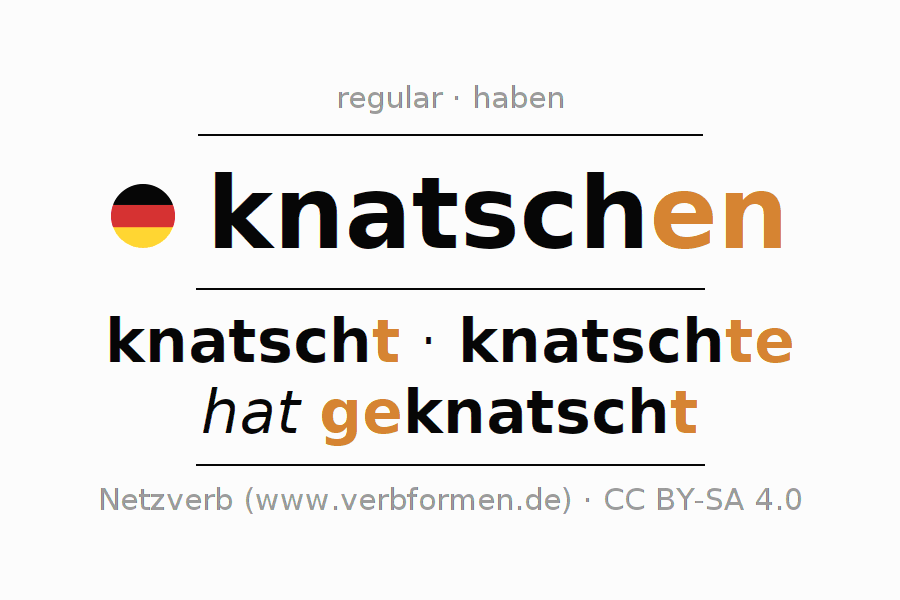 The verb knatschen fully conjugated in all persons and numbers in the Infinitive Present Perfect
