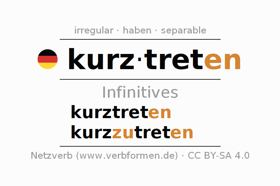 Verb forms in Infinitive of kurztreten