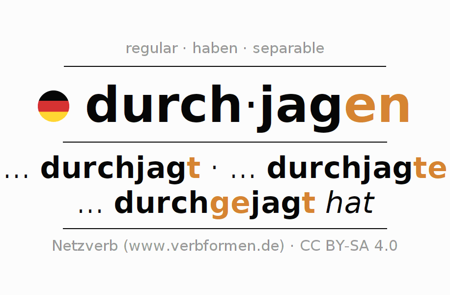 The verb durch-jagen (hat) fully conjugated in all persons and numbers in the Infinitive Present Perfect
