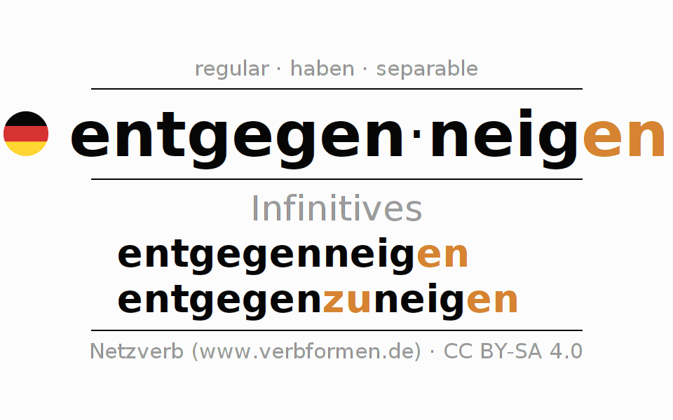 The verb entgegenneigen fully conjugated in all persons and numbers in the Infinitive Present Perfect