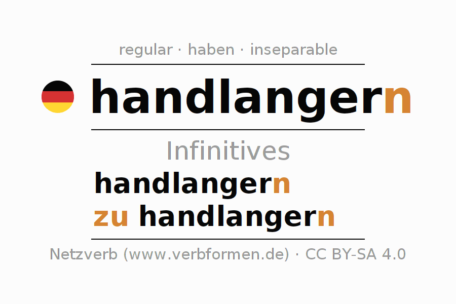 The verb handlangern fully conjugated in all persons and numbers in the Infinitive Present Perfect