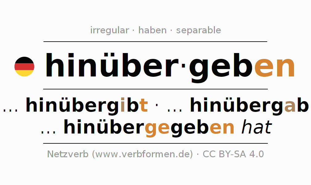 The verb hinübergeben fully conjugated in all persons and numbers in the Infinitive Present Perfect