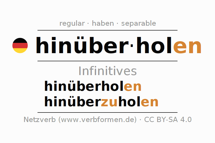 The verb hinüberholen fully conjugated in all persons and numbers in the Infinitive Present Perfect