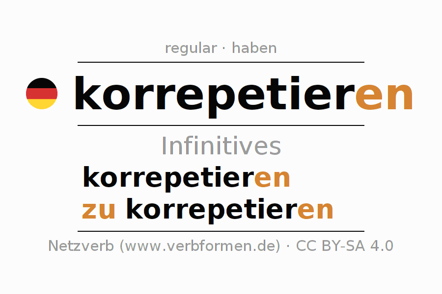 The verb korrepetieren fully conjugated in all persons and numbers in the Infinitive Present Perfect