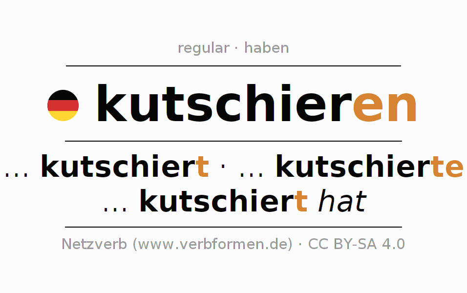 The verb kutschieren (hat) fully conjugated in all persons and numbers in the Infinitive Present Perfect