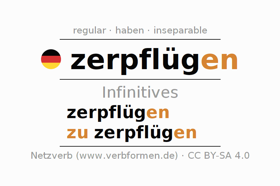The verb zerpflügen fully conjugated in all persons and numbers in the Infinitive Present Perfect