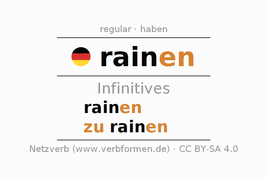 The verb rainen fully conjugated in all persons and numbers in the Infinitive Present Perfect