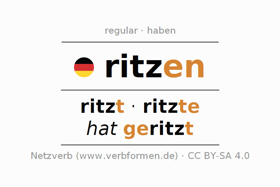 The verb ritzen fully conjugated in all persons and numbers in the Infinitive Present Perfect