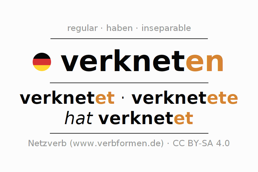 The verb verkneten fully conjugated in all persons and numbers in the Infinitive Present Perfect