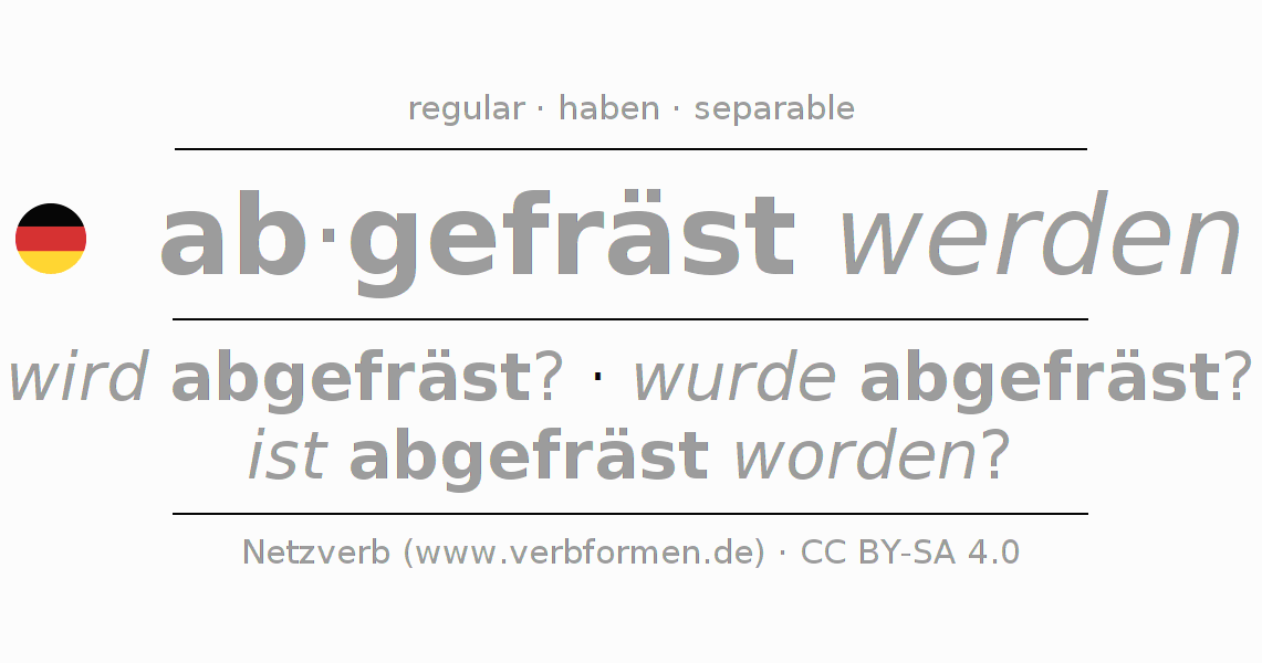 The verb abfräsen fully conjugated in all persons and numbers in the Infinitive Present Perfect