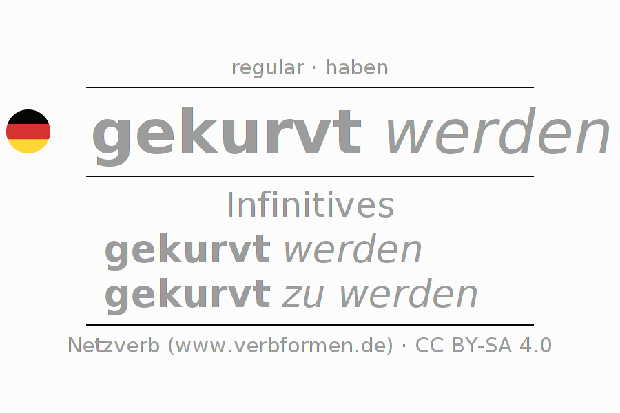 The conjugation of kurven in Infinitive Present Perfect base form Passive is gekurvt werden, gekurvt zu werden.The conjugation corresponds to certain grammatical rules. Likewise the requirements for the conjugation of the simple verb forms of kurven in Infinitive. Comments ☆