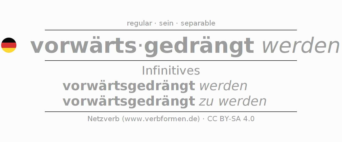 The verb vorwärtsdrängen fully conjugated in all persons and numbers in the Infinitive Present Perfect