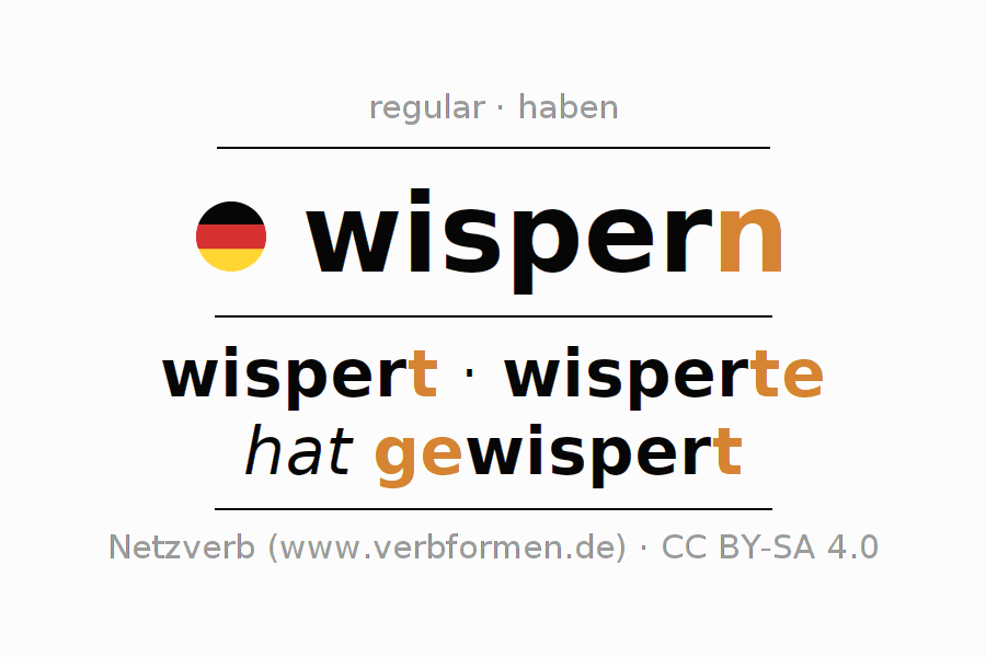 The verb wispern fully conjugated in all persons and numbers in the Infinitive Present Perfect