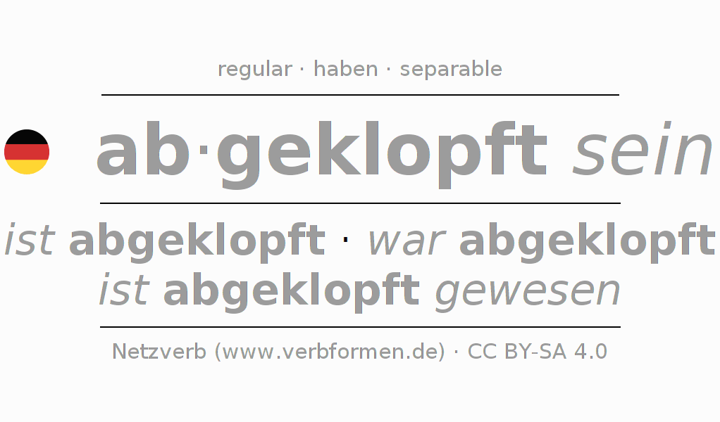 The verb abklopfen fully conjugated in all persons and numbers in the Infinitive Present Perfect