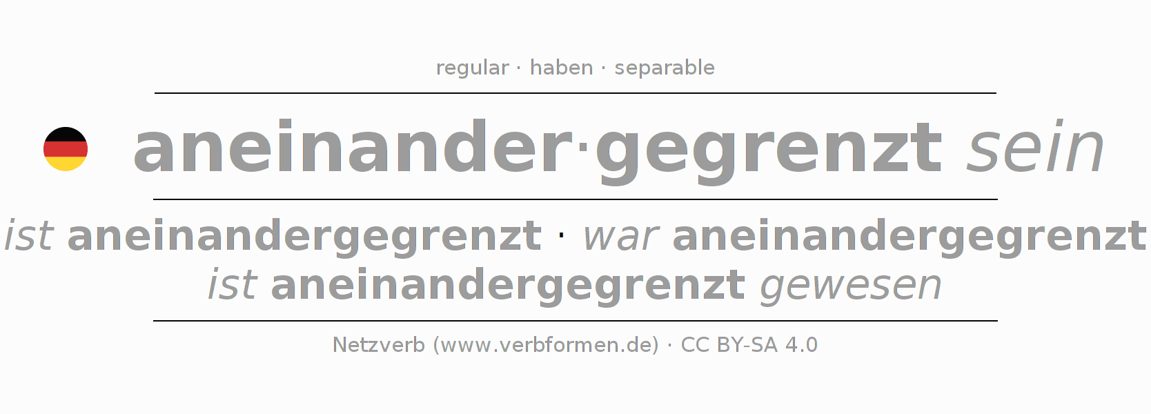 The verb aneinandergrenzen fully conjugated in all persons and numbers in the Infinitive Present Perfect