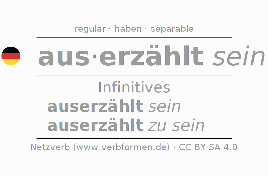 The verb auserzählen fully conjugated in all persons and numbers in the Infinitive Present Perfect