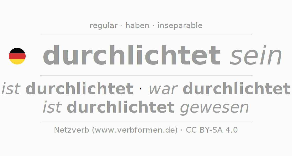 The verb durchlichten fully conjugated in all persons and numbers in the Infinitive Present Perfect