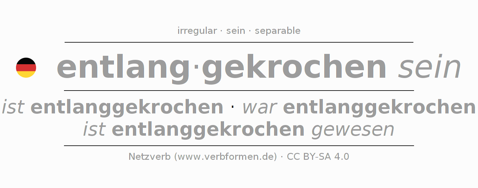 The verb entlangkriechen fully conjugated in all persons and numbers in the Infinitive Present Perfect