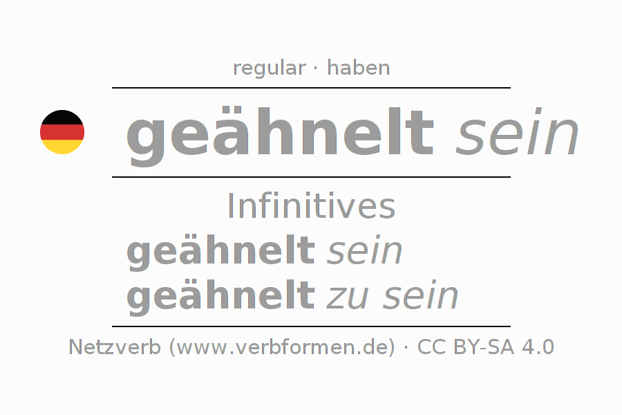 The conjugation of ähneln in Infinitive Present Perfect base form Statal Passive is geähnelt sein, geähnelt zu sein.The conjugation corresponds to certain grammatical rules. Likewise the requirements for the conjugation of the simple verb forms of ähneln in Infinitive. Comments ☆