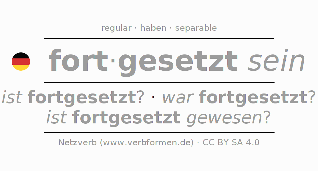 The verb fortsetzen fully conjugated in all persons and numbers in the Infinitive Present Perfect