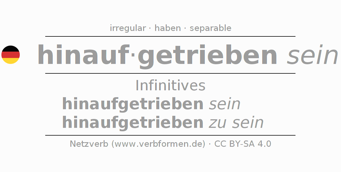 The verb hinauftreiben fully conjugated in all persons and numbers in the Infinitive Present Perfect