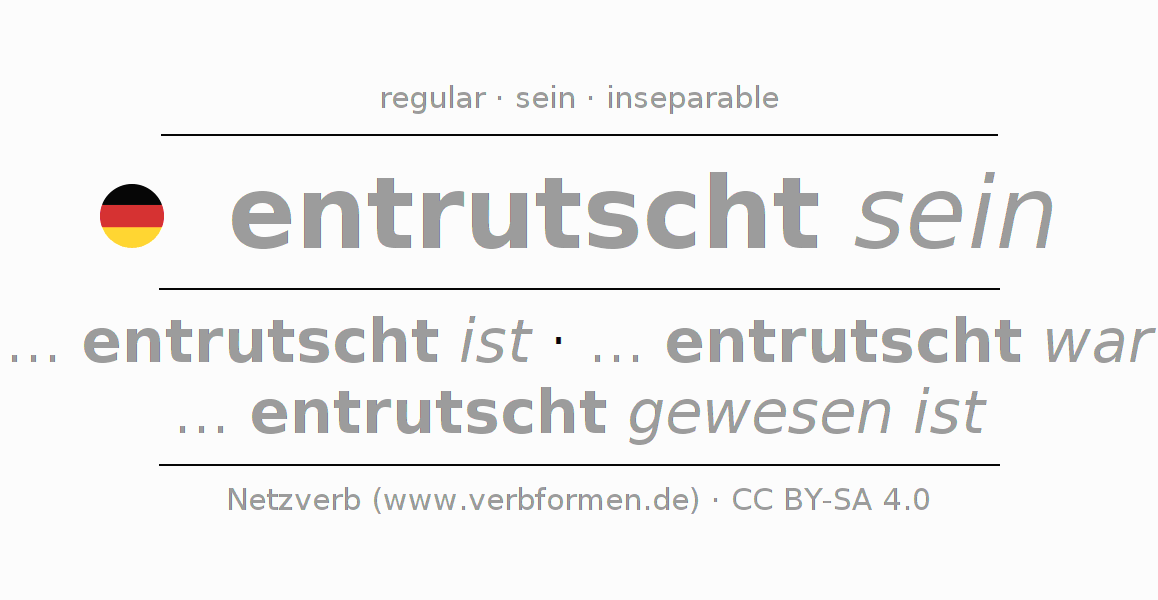 The conjugation of entrutschen in Infinitive Present Perfect base form Statal Passive is entrutscht sein, entrutscht zu sein.The conjugation corresponds to certain grammatical rules. Likewise the requirements for the conjugation of the simple verb forms of entrutschen in Infinitive. Comments ☆